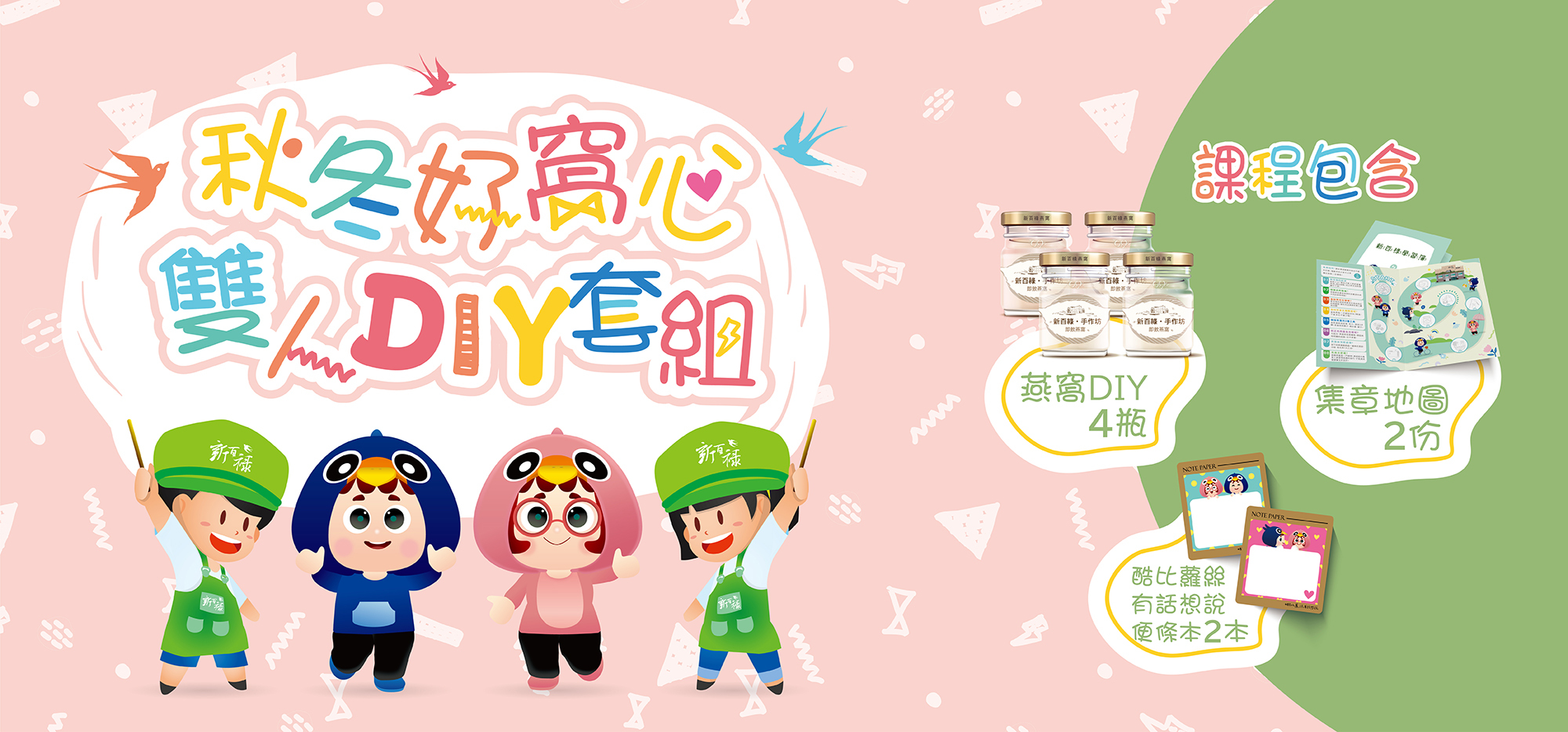 課程成果:燕窩DIY 4瓶+集章地圖2張+酷比蘿絲有話想說便條本2本
